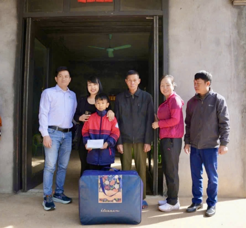 Bên cạnh đó, đoàn cũng gửi tặng 20 suất quà hỗ trợ cho 20 hộ gia đình có hoàn cảnh khó khăn, giúp bà con vơi bớt phần nào gánh nặng trong cuộc sống thường nhật. Những món quà thiết thực này không chỉ hỗ trợ về vật chất mà còn là lời động viên tinh thần, giúp bà con yên tâm lao động, sản xuất và ổn định cuộc sống.