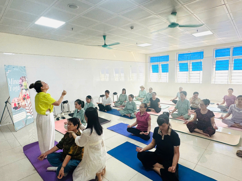 Trong không gian nhẹ nhàng, ấm áp, những tấm thảm yoga được trải ra, mở đầu cho một hành trình đặc biệt – hành trình chăm sóc và chữa lành từ bên trong. Dưới sự hướng dẫn tận tâm của huấn luyện viên, các người bệnh ung bướu – dù đang đối diện với nhiều khó khăn về sức khỏe – vẫn kiên trì thực hiện từng động tác, từng nhịp thở, từng bước làm quen với sự thả lỏng và cân bằng cơ thể.