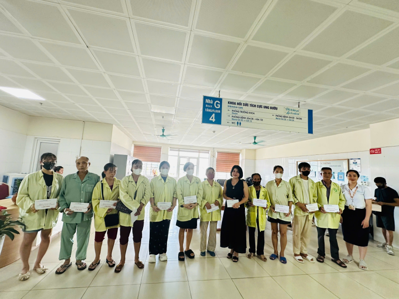 Tiếp tục thực hiện vai trò là “cầu nối” giữa cộng đồng và người bệnh, Tổ Công tác xã hội Bệnh viện Bãi Cháy đã đồng hành cùng gia đình anh chị Thái Hạnh trực tiếp đến thăm hỏi, trao tận tay các phần quà cho bệnh nhân đang điều trị tại Khoa Ung bướu 1, Ung bướu 2 và Hồi sức ung bướu. Những món quà sấm áp tình người đã giúp người bệnh cảm thấy được quan tâm, không đơn độc trên hành trình chống chọi với bệnh tật.