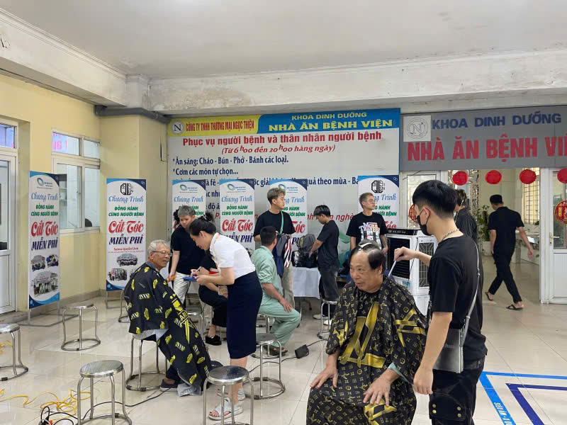 Bên cạnh đó, công tác xã hội trong bệnh viện cũng đặc biệt chú trọng đến việc chăm sóc đời sống tinh thần cho người bệnh. Tổ Công tác xã hội phối hợp với các đơn vị thiện nguyện tổ chức chương trình cắt tóc miễn phí cho bệnh nhân tại tầng 2 nhà A. Những hoạt động giản dị nhưng đầy ý nghĩa này giúp bệnh nhân cảm thấy thoải mái, tự tin hơn trong quá trình điều trị, đồng thời mang lại niềm vui và sự lạc quan cho nhiều người bệnh phải điều trị dài ngày.