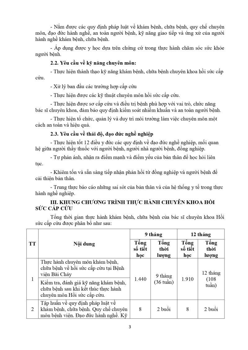 Nội dung thực hành khám bệnh, chữa bệnh đối với bác sĩ cấp giấy phép hành nghề phạm vi hành nghề chuyên khoa HSCC 2026/03/05 03:27