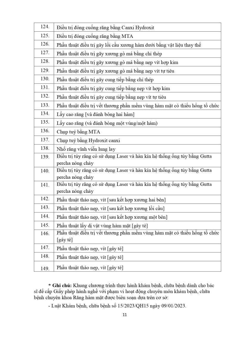 Nội dung thực hành khám bệnh, chữa bệnh đối với bác sĩ cấp giấy phép hành nghề phạm vi hành nghề chuyên khoa RHM 2026/03/05 03:59