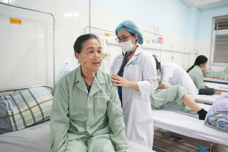 Bác sĩ CKI Phạm Thị Út Trang – Phó Trưởng Khoa Nội hô hấp Bệnh viện Bãi Cháy thăm khám cho bệnh nhân bệnh phổi tắc nghẽn mạn tính
