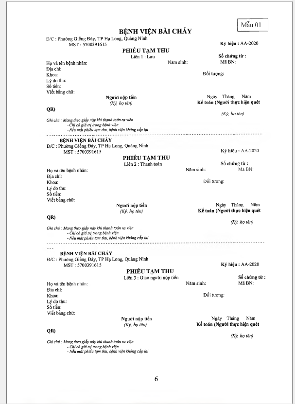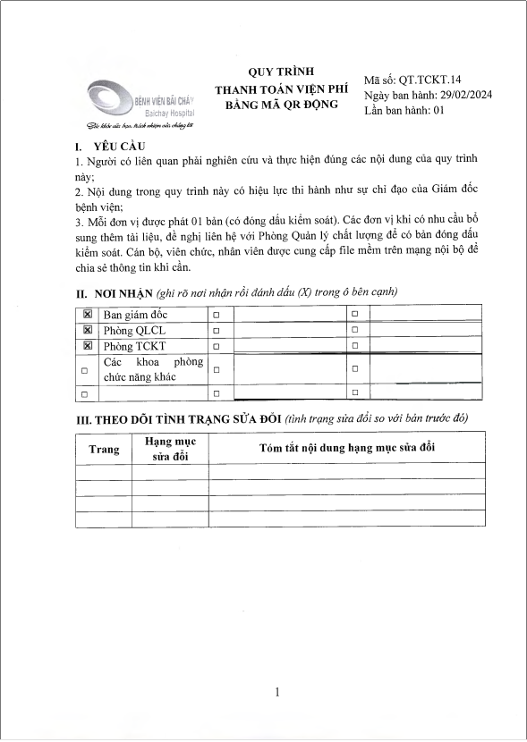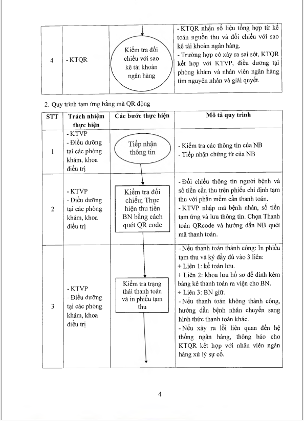 Quy trình thanh toán viện phí và tạm ứng bằng mã QR động