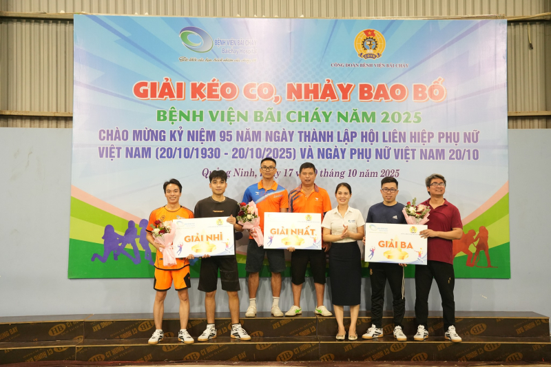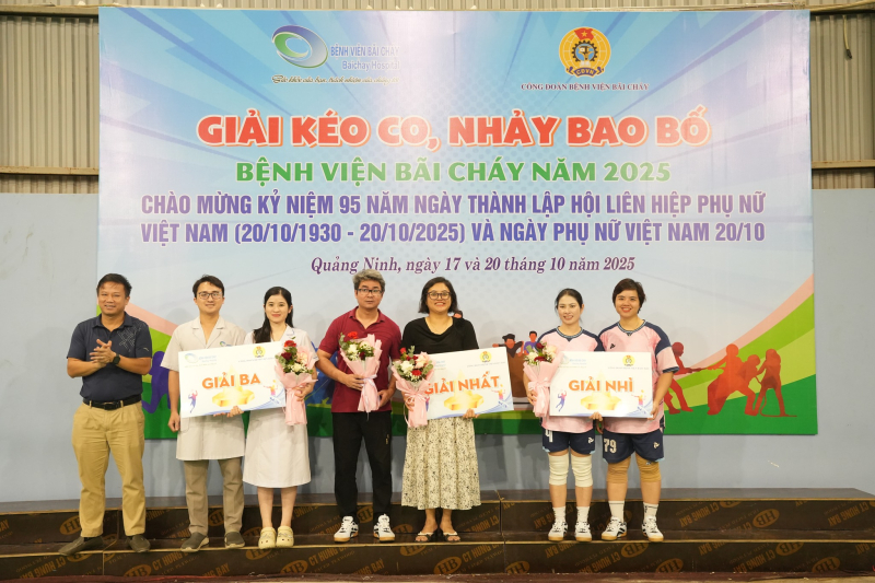 Lễ Khai mạc Giải thể thao Kéo co, Nhảy bao bố năm 2025 đã diễn ra vào ngày 17/10 với sự tham dự của BSCKII Hoàng Văn Quyết – Phó Giám đốc Bệnh viện Bãi Cháy, BSCKII Thái Xuân Hường – Chủ tịch Công đoàn Bệnh viện, cùng các đồng chí trong Ban Chấp hành Công đoàn, lãnh đạo các khoa, phòng và các vận động viên đến từ 5 khối công đoàn: Hành chính, Nội, Ngoại, Ung bướu, Cận lâm sàng.