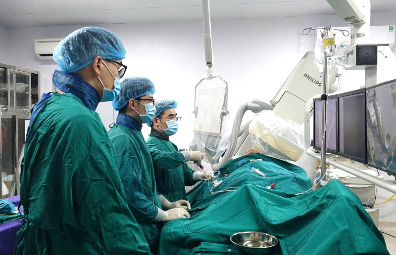 Kíp can thiệp do Ths.BS Đinh Danh Trình, Trưởng khoa Tim mạch, cùng ê kíp đã nhanh chóng tiến hành can thiệp đặt stent mạch vành, tái thông đoạn mạch bị hẹp. Ca can thiệp diễn ra thành công, giúp khôi phục dòng máu nuôi cơ tim, ngăn chặn nguy cơ nhồi máu lan rộng và biến chứng nguy hiểm.