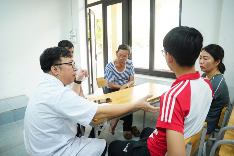 Đặc biệt, 11 trường hợp học sinh được chẩn đoán mắc dị tật lõm ngực có chỉ định phẫu thuật đã được BSCKII Hoàng Minh Tuân – Trưởng phòng quản lý chất lượng, Bệnh viện Bãi Cháy tư vấn chuyên sâu về phương pháp điều trị - phẫu thuật Nuss cải tiến đang được triển khai tại Bệnh viện Bãi Cháy. Đây là kỹ thuật hiện đại, ít xâm lấn, không cần cắt xương hay sụn, giúp chỉnh hình lồng ngực hiệu quả, cải thiện chức năng hô hấp và thẩm mỹ, rút ngắn thời gian hồi phục, mang lại chất lượng cuộc sống tốt hơn cho người bệnh.