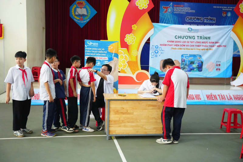 Tại chương trình, với sự chỉ đạo chuyên môn của BSCKII Hoàng Văn Quyết – Phó Giám đốc Bệnh viện Bãi Cháy, Đoàn bác sĩ chuyên khoa của Bệnh viện Bãi Cháy đã trực tiếp khám sàng lọc, đánh giá hình thái lồng ngực cho 1818 học sinh. Quá trình thăm khám đã phát hiện 82 trẻ mắc các dị tật lồng ngực như lõm ngực, ức gà… ở các mức độ khác nhau. Những dị tật lồng ngực này có thể ảnh hưởng lâu dài đến chức năng tim, phổi, sức khỏe thể chất và tâm lý của trẻ nếu không được phát hiện sớm và điều trị kịp thời.