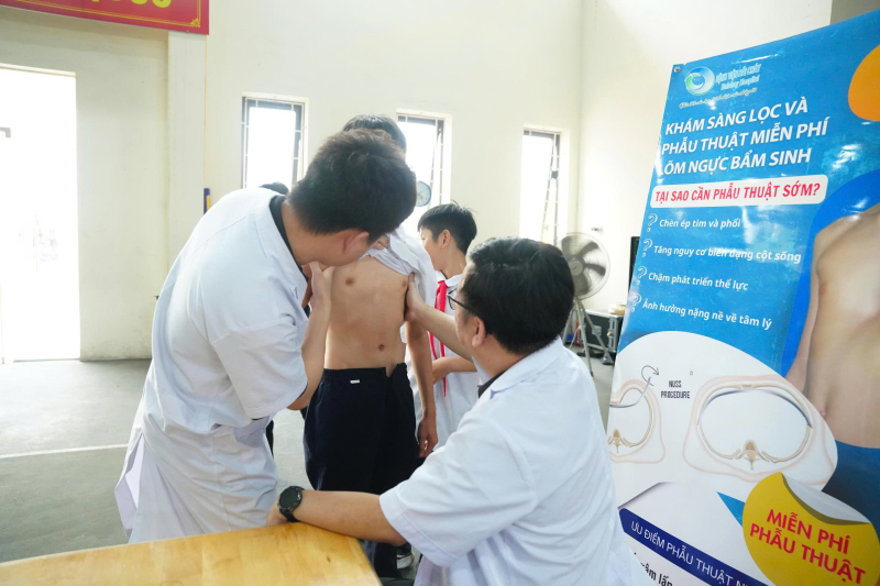 Với mục tiêu phát hiện sớm và can thiệp kịp thời các dị tật lồng ngực ở trẻ em, ngày 15/4/2026, Bệnh viện Bãi Cháy thực hiện chương trình khám sàng lọc miễn phí cho 1.818 học sinh tại Trường THCS Trần Quốc Toản, phường Uông Bí, tỉnh Quảng Ninh. Chương trình nhằm thực hiện nhiệm vụ nghiên cứu khoa học và công nghệ cấp tỉnh: “Nghiên cứu ứng dụng phẫu thuật Nuss cải tiến điều trị lõm ngực bẩm sinh tại Bệnh viện Bãi Cháy”.
