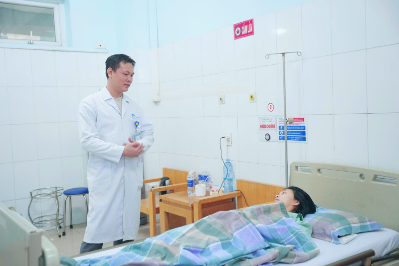 Bác sĩ CKII Lê Triệu Linh khám lại cho chị Thảo sau phẫu thuật.