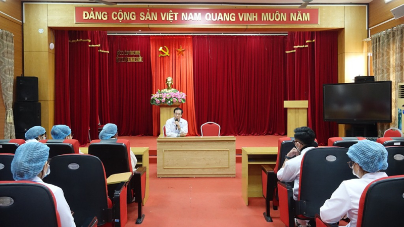 Bác sĩ CKI Đỗ Văn Thịnh, Phó Giám đốc Bệnh viện phát biểu và động viên thí sinh.