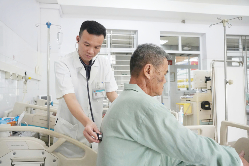 Ths.BS Giáp Hùng Mạnh – Trưởng Khoa Thần kinh -VLTL -PHCN thăm khám cho người bệnh sau can thiệp