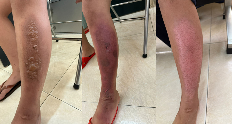 Bệnh nhân Trần N H L (11 tuổi, ở phường Bãi Cháy, tỉnh Quảng Ninh) khám tại Bệnh viện Bãi Cháy trong tình trạng bị bỏng nhiệt nóng vùng cẳng chân trái, đau rát, phỏng nước phồng rộp trên da .Các bác sĩ đã thăm khám, chẩn đoán bệnh nhân bị bỏng độ II, diện tích tổn thương khoảng 3% cơ thể.