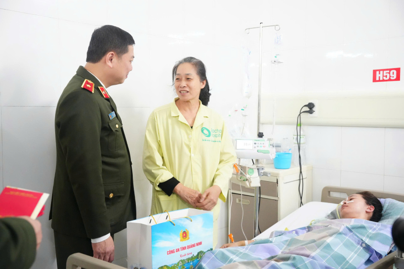Ngay sau đó, Đoàn đã trực tiếp trao 29 suất quà tới 29 bệnh nhân đang điều trị tại Trung tâm Ung bướu. Mỗi phần quà không chỉ mang giá trị vật chất mà còn thể hiện tình cảm, sự sẻ chia, quan tâm sâu sắc của lực lượng Công an tỉnh Quảng Ninh, tiếp thêm niềm tin và nghị lực cho người bệnh trong hành trình chiến đấu với bệnh tật.
