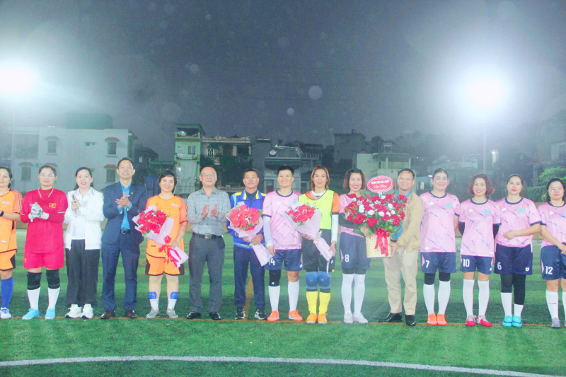 Lãnh đạo Công đoàn 2 đơn vị tặng hoa cho hai đội.