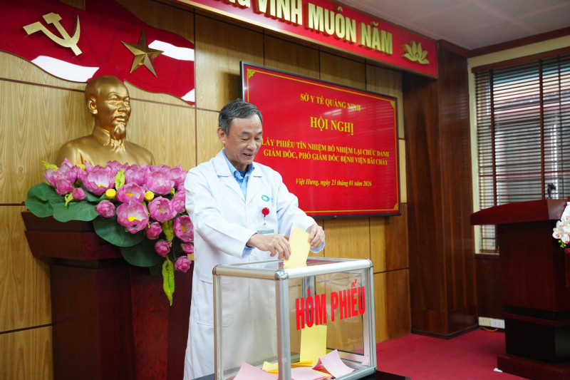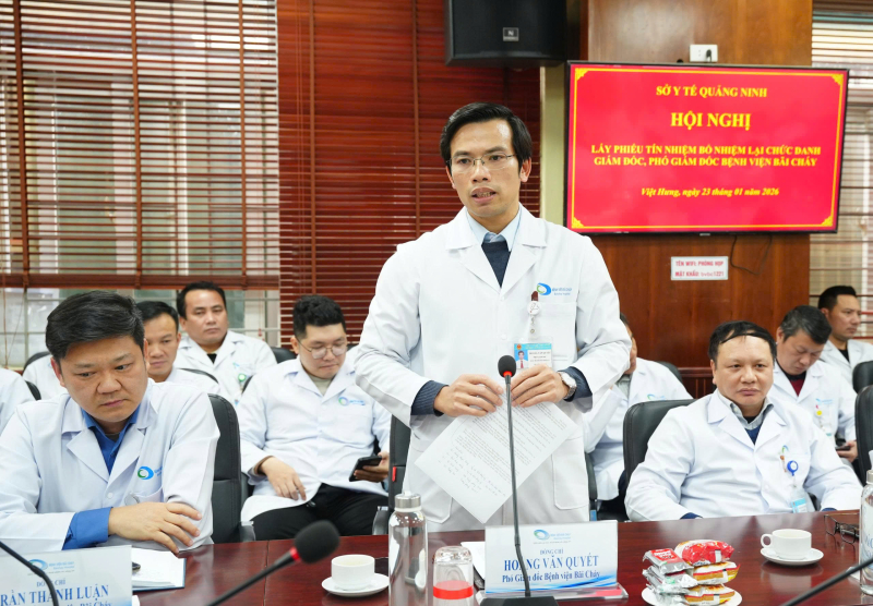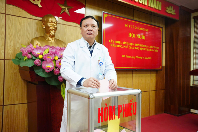 Chiều ngày 23/01/2026, Bệnh viện Bãi Cháy tổ chức Hội nghị lấy phiếu tín nhiệm trong quy trình bổ nhiệm lại chức danh Giám đốc và Phó Giám đốc Bệnh viện Bãi Cháy theo quy định hiện hành. Hội nghị do đồng chí Bùi Mạnh Hùng – Quyền Giám đốc Sở Y tế Quảng Ninh chủ trì.
