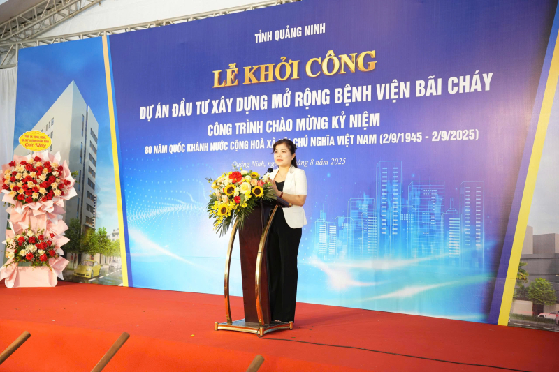 Phát biểu tại Lễ khởi công, đồng chí Nguyễn Thị Thu Hà, Phó Trưởng Đoàn đại biểu Quốc hội tỉnh Quảng Ninh cũng khẳng định dự án xây dựng, mở rộng Bệnh viện Bãi Cháy được xác định là một dự án y tế trọng điểm có ý nghĩa đặc biệt quan trọng đối với tỉnh Quảng Ninh trong giai đoạn phát triển mới, đáp ứng tốt hơn cho công tác an sinh – xã hội trên địa bàn tỉnh. Song song với cơ sở vật chất được quan tâm đầu tư, đồng chí cũng mong muốn đội ngũ y bác sĩ của Bệnh viện cũng sẽ tiếp tục trau dồi chuyên môn, phát huy y đức, không ngừng nghiên cứu học tập làm chủ các kỹ thuật cao, kỹ thuật chuyên môn, giúp người bệnh yên tâm điều trị ngay tại tuyến tỉnh.