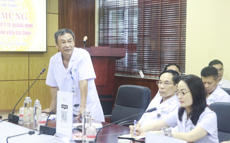 TTND.BSCKII Lê Ngọc Dũng – Giám đốc Bệnh viện Bãi Cháy báo cáo công tác quản lý khám chữa bệnh tại Bệnh viện Bãi Cháy