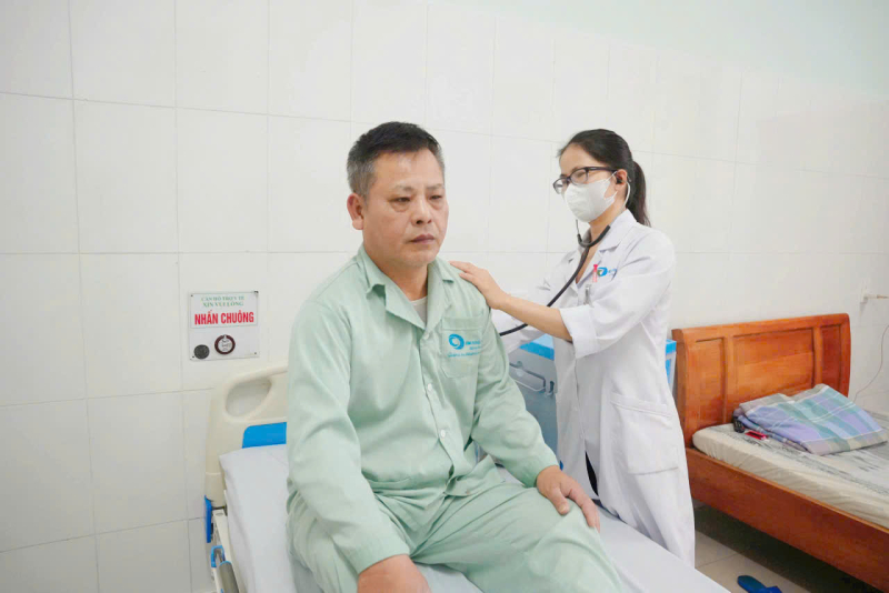 Ths.BSNT Nguyễn Thị Ngọc – Phó Trưởng Khoa Thần kinh – Vật lý trị liệu, Phục hồi chức năng, Bệnh viện Bãi Cháy thăm khám cho người bệnh