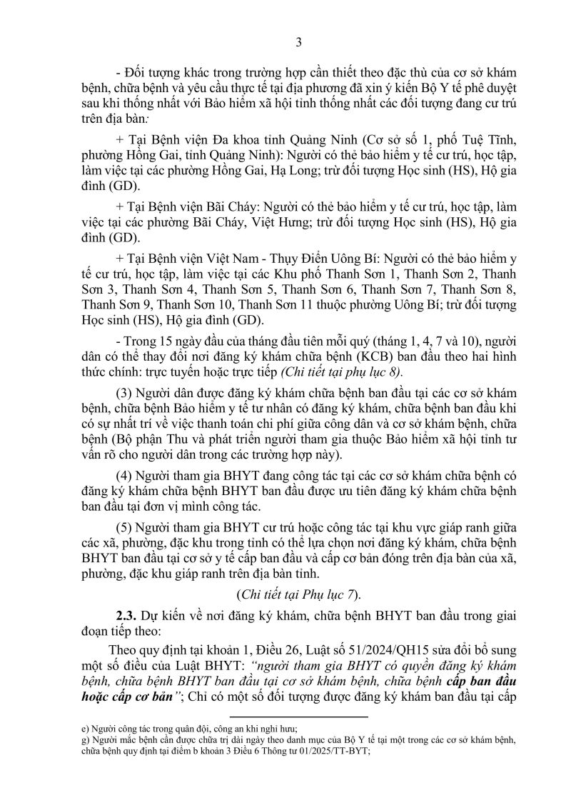 Người dân có nhu cầu thay đổi nơi đăng ký KCB ban đầu có thể thực hiện vào 15 ngày đầu của tháng đầu tiên mỗi quý (tháng 1, 4, 7 và 10) thông qua hình thức trực tiếp hoặc trực tuyến. Cụ thể, Người tham gia Bảo hiểm xã hội hộ gia đình có thể nộp hồ sơ trực tiếp tại cơ quan Bảo hiểm xã hội nơi cư trú hoặc trực tiếp qua Cổng Dịch vụ công Bảo hiểm xã hội Việt Nam. Người lao động tham gia Bảo hiểm y tế bắt buộc đăng ký thông qua đơn vị sử dụng lao động.