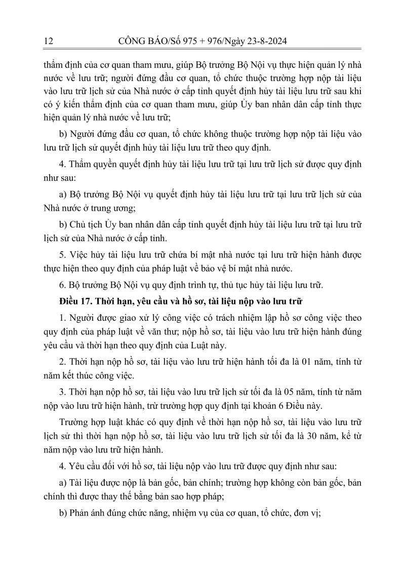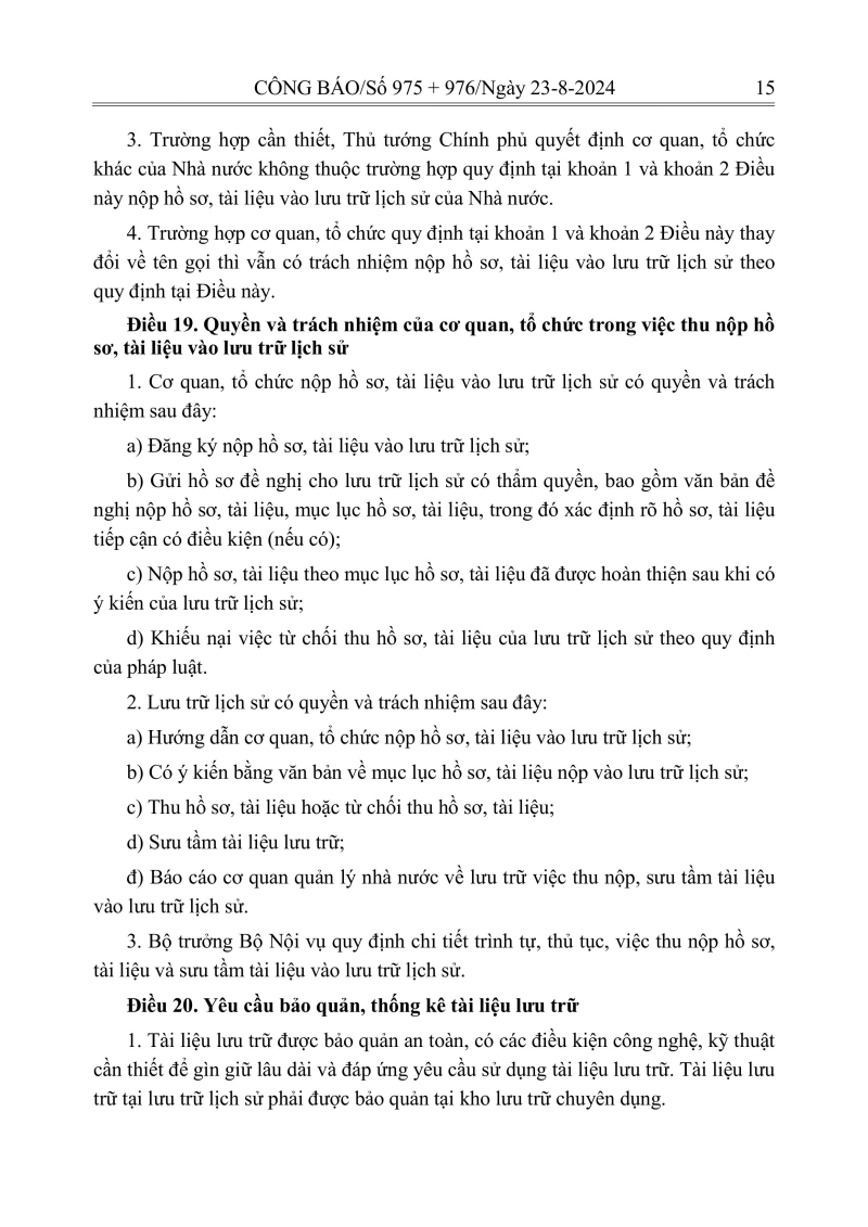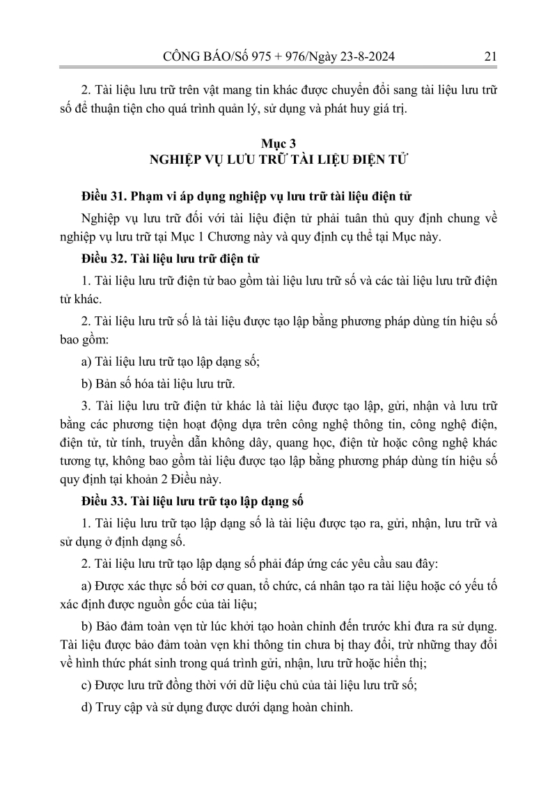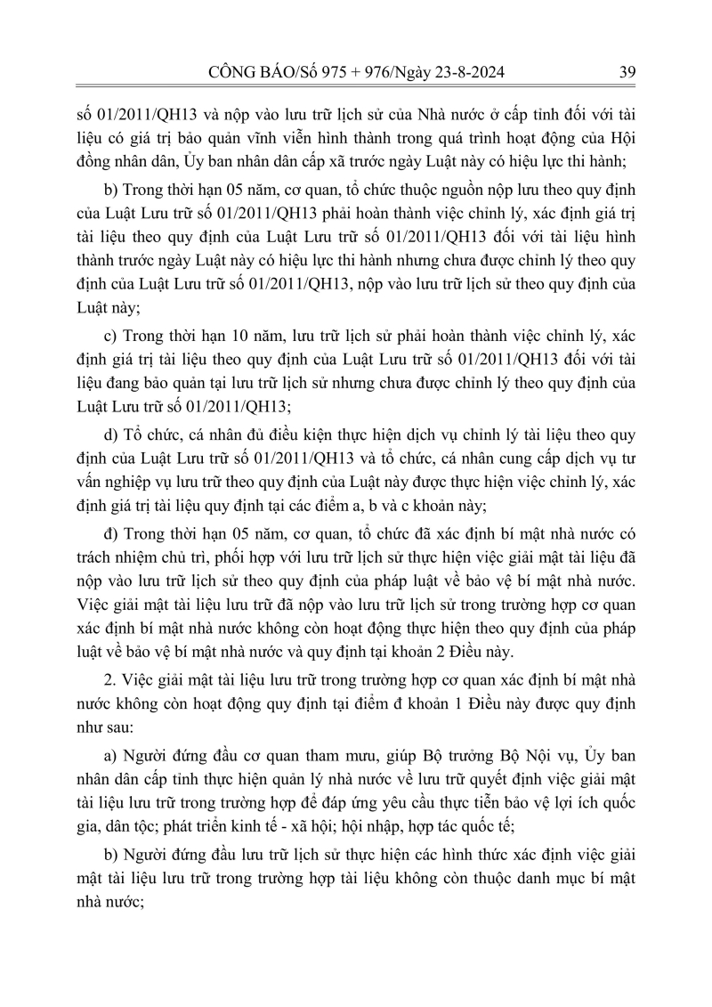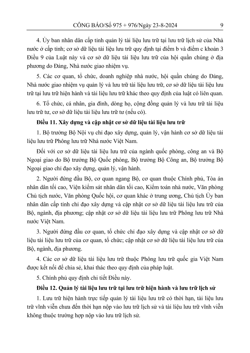 Luật lưu trữ: CV số 33 năm 2024 QH15