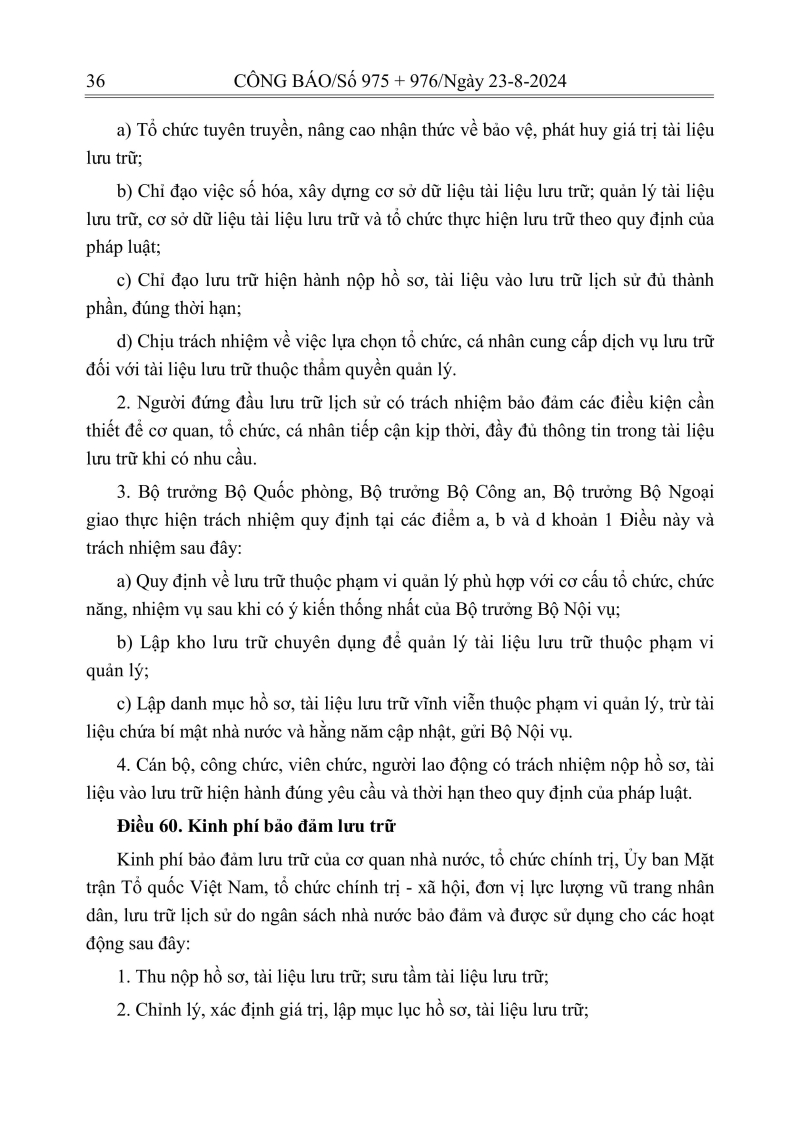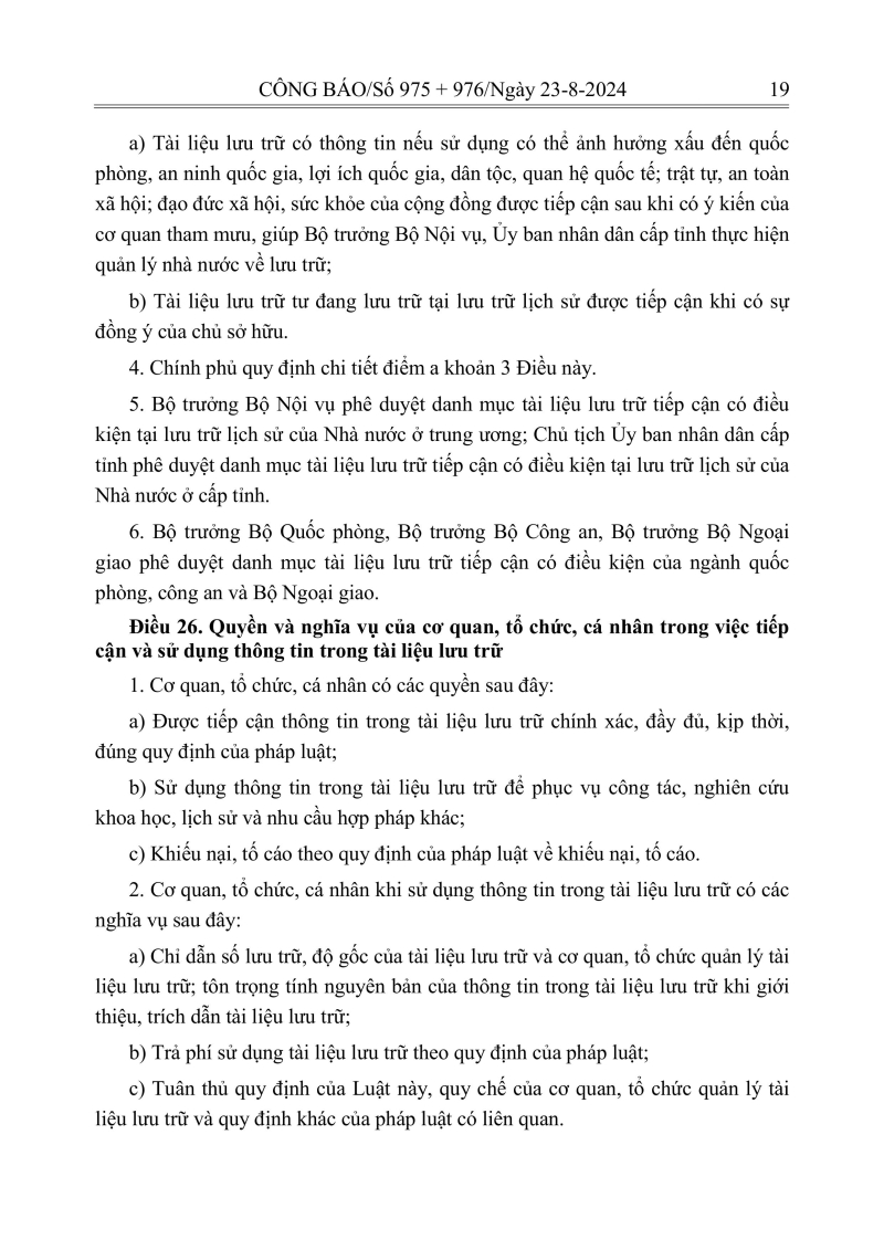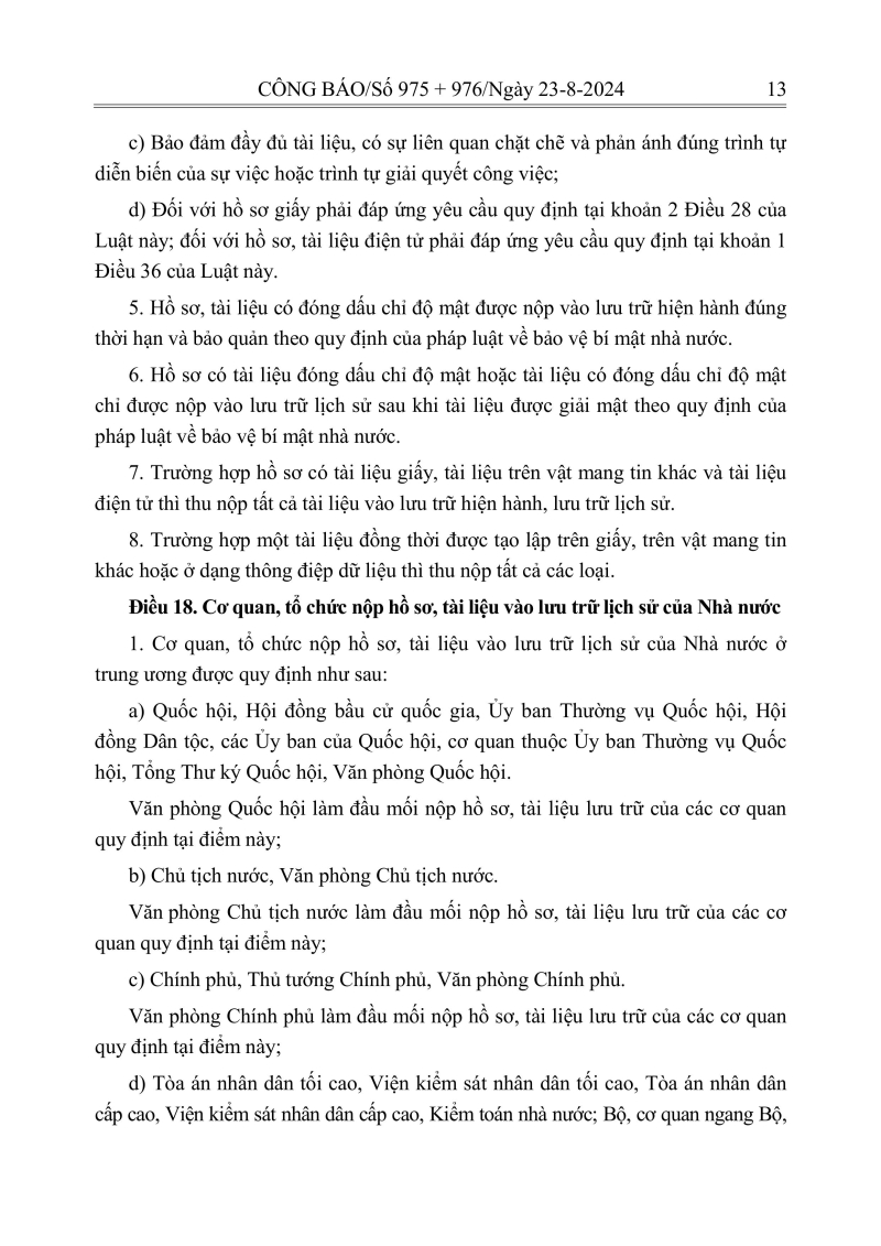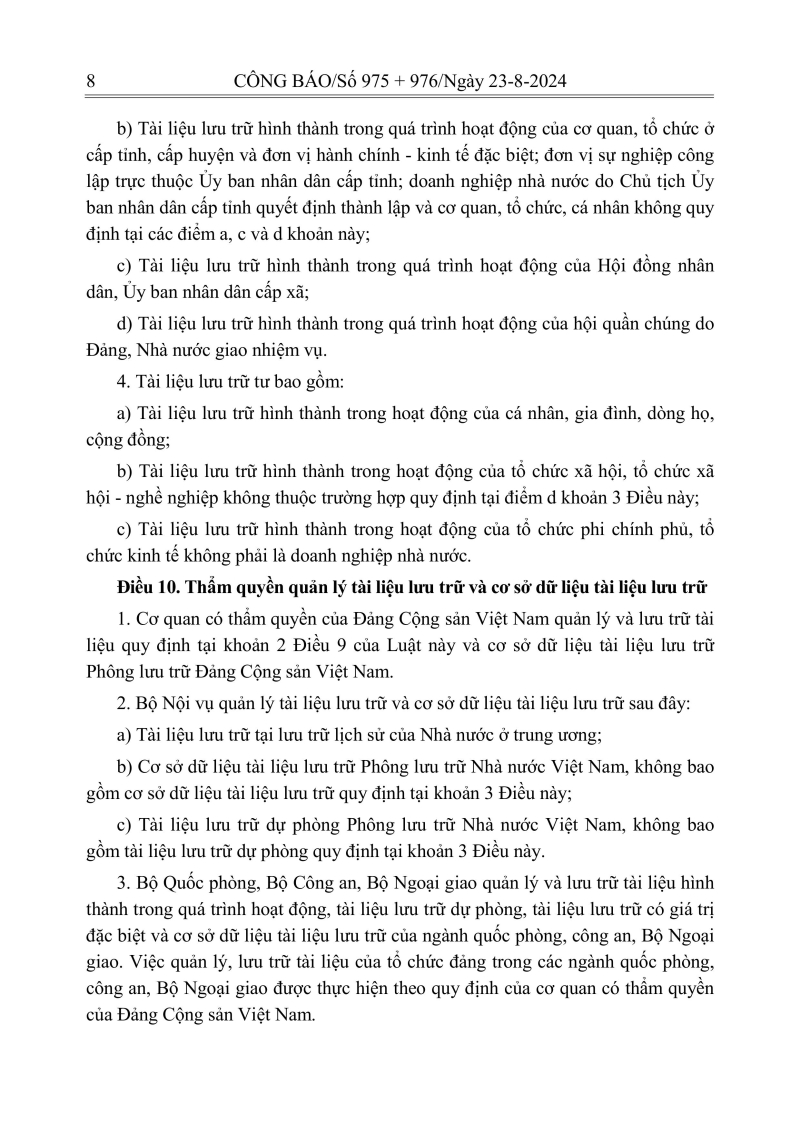 Luật lưu trữ: CV số 33 năm 2024 QH15