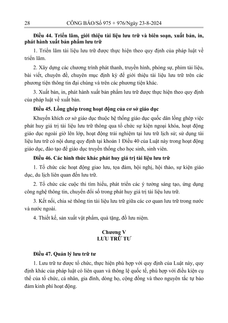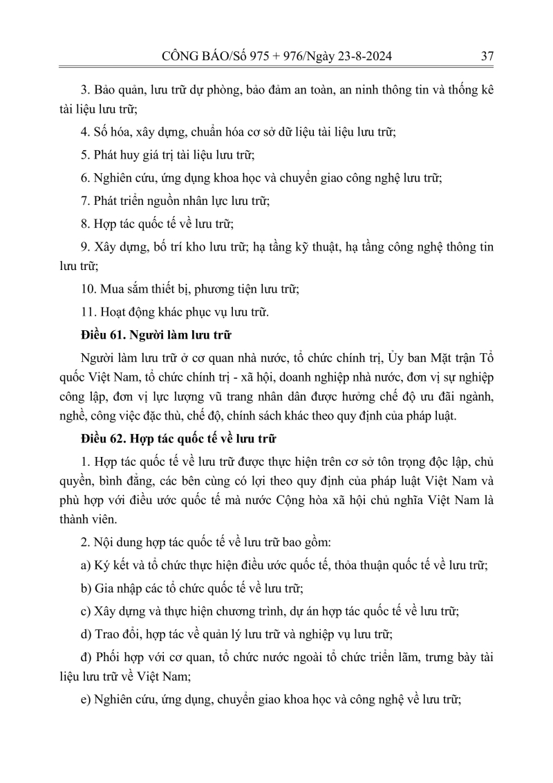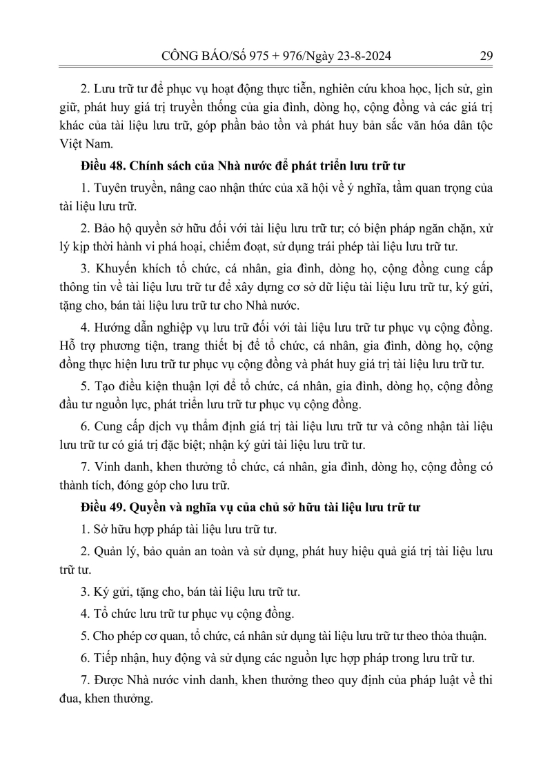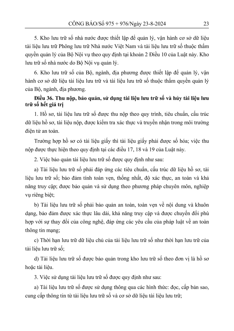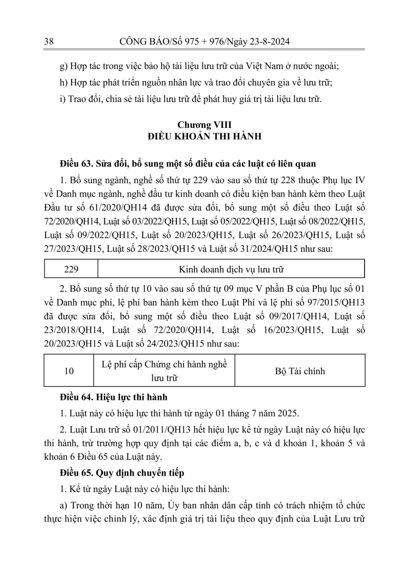 Luật lưu trữ: CV số 33 năm 2024 QH15