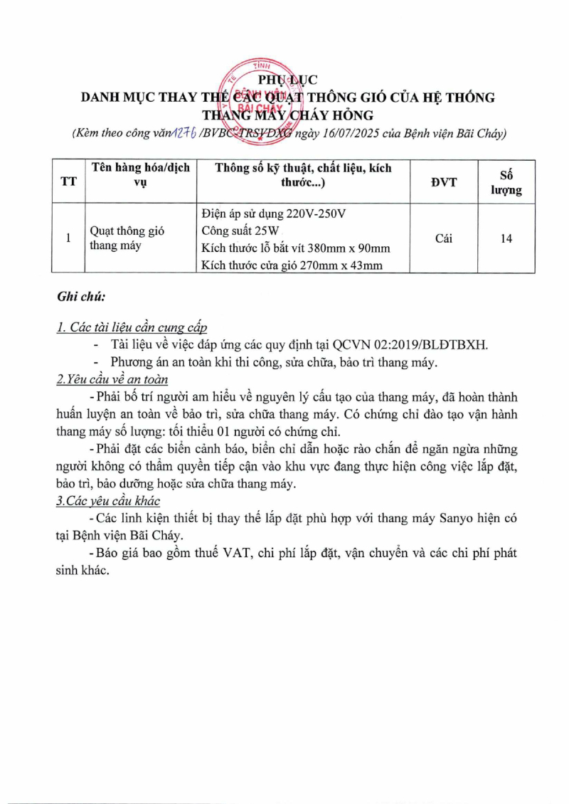 Thông báo 1276 nhu cầu thay thế các quạt thông gió của hệ thống thang máy cháy hỏng