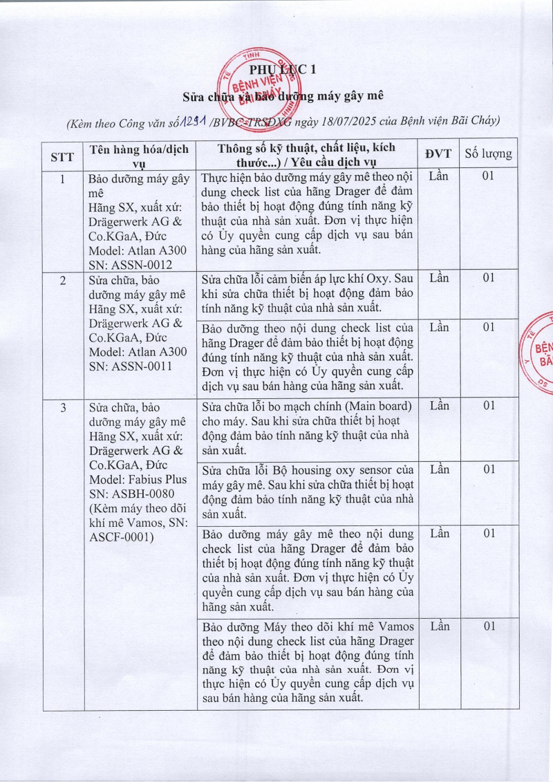 Thông báo 1291 nhu cầu sửa chữa và bảo dưỡng máy gây mê 2025/07/18 08:55 Thông báo 1291 nhu cầu sửa chữa và bảo dưỡng máy gây mê