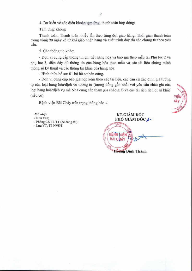Thông báo số 753 về việc thuê đơn vị cung cấp dịch vụ phun thuốc diệt muỗi và côn trùng phòng chống dịch tại Bệnh viện Bãi Cháy năm 2026