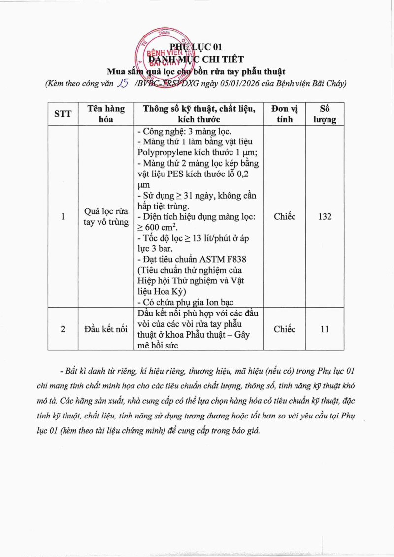 Thông báo 15 mua sắm quả lọc cho bồn rửa tay phẫu thuật 2026/01/05 09:26 Thông báo 15 mua sắm quả lọc cho bồn rửa tay phẫu thuật