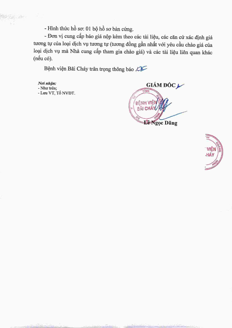 Thông báo 1632 nhu cầu cung cấp dịch vụ vệ sinh tại Bệnh viện Bãi Cháy