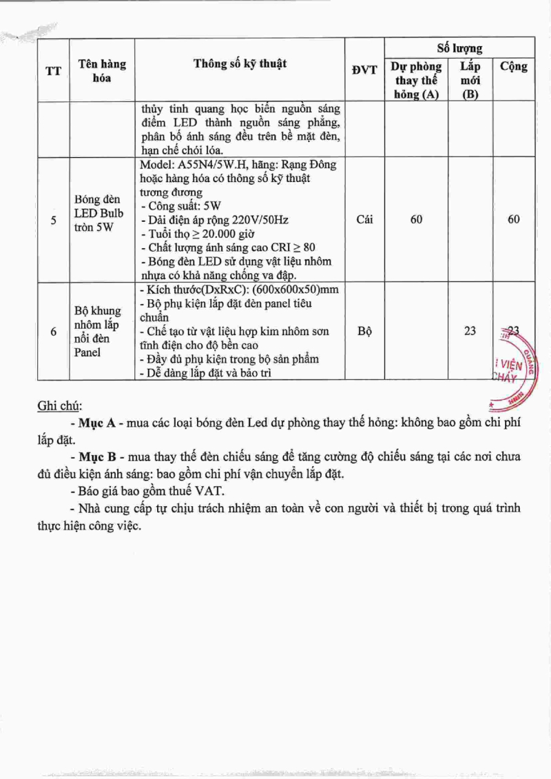Thông báo 1654 nhu cầu mua sắm bóng đèn led 2025/09/12 08:50 Thông báo 1654 nhu cầu mua sắm bóng đèn led