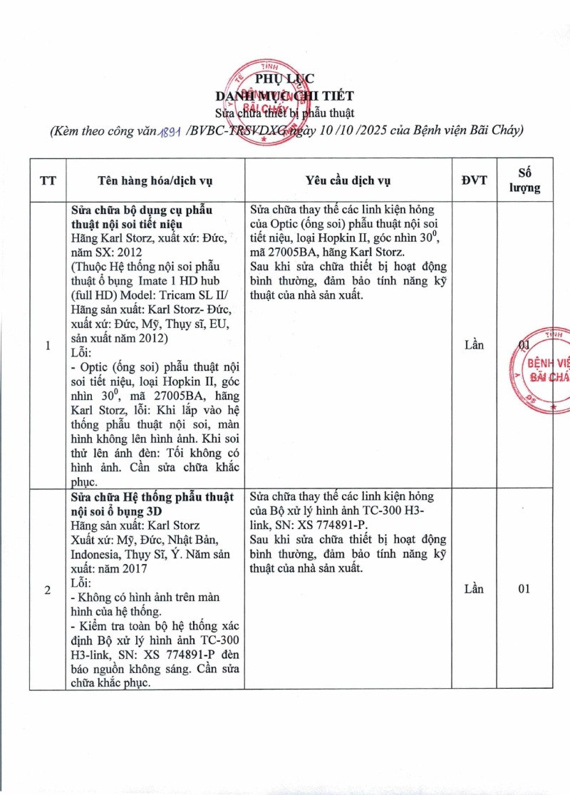 Thông báo 1891 nhu cầu sửa chữa thiết bị phẫu thuật 2025/10/10 03:51 Thông báo 1891 nhu cầu sửa chữa thiết bị phẫu thuật