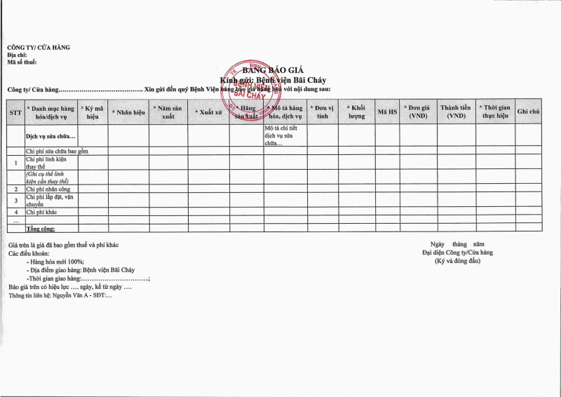 Thông báo số 709 về nhu cầu mua sắm vật tư can thiệp mạch, xquang can thiệp 2026,2027