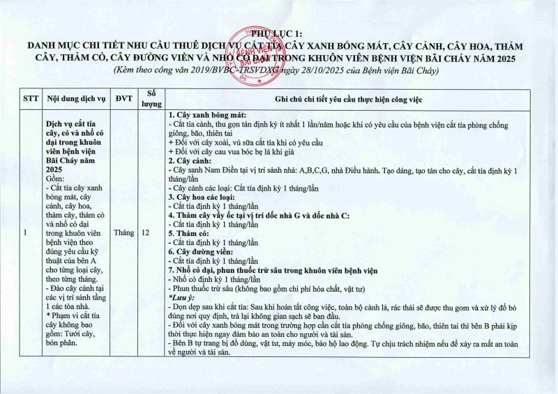 Thông báo 2019 nhu cầu thuê dịch vụ cắt tỉa cây xanh bóng mát, cây cảnh, cây hoa, thảm cây, thảm cỏ và nhổ cỏ dại