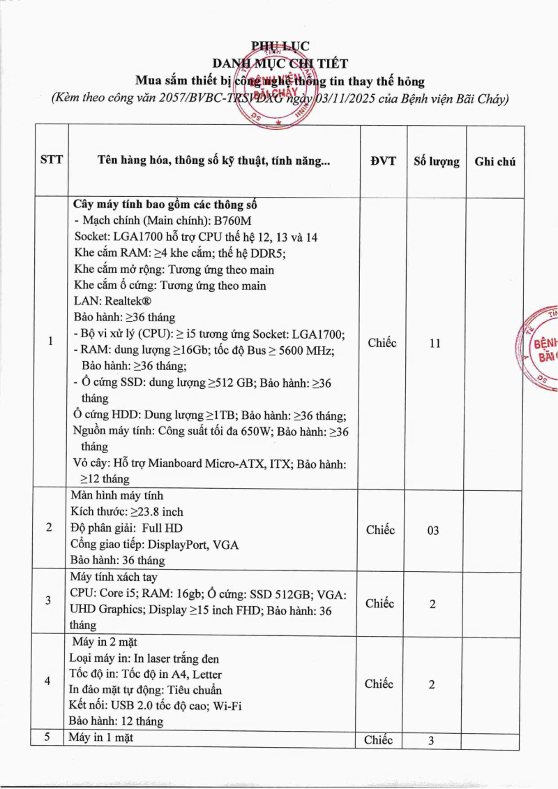 Thông báo 2057 nhu cầu mua sắm thiết bị công nghệ thông tin thay thế hỏng 2025/11/03 09:37 Thông báo 2057 nhu cầu mua sắm thiết bị công nghệ thông tin thay thế hỏng