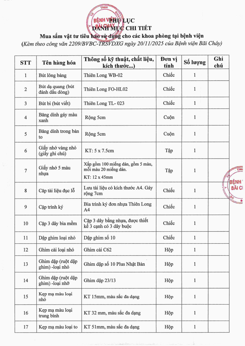 Thông báo 2209 nhu cầu mua sắm vật tư tiêu hao sử dụng cho các khoa phòng tại bệnh viện
