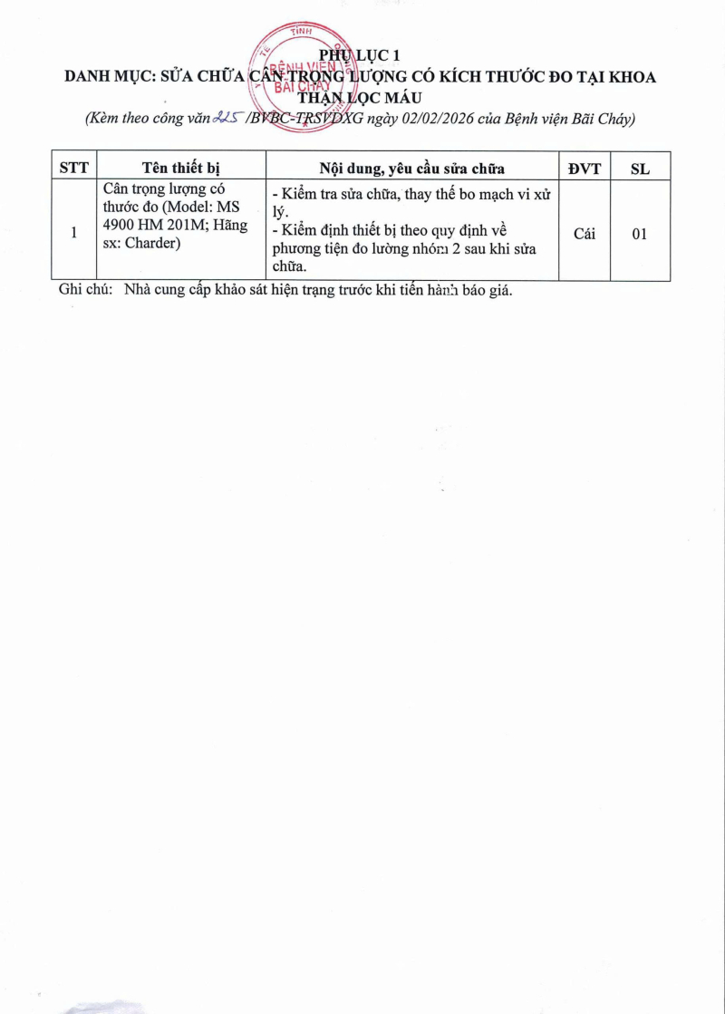 Thông báo 225 nhu cầu sửa chữa cân trọng lượng có thước đo tại Khoa thận lọc máu 2026/02/02 03:39 Thông báo 225 nhu cầu sửa chữa cân trọng lượng có thước đo tại Khoa thận lọc máu