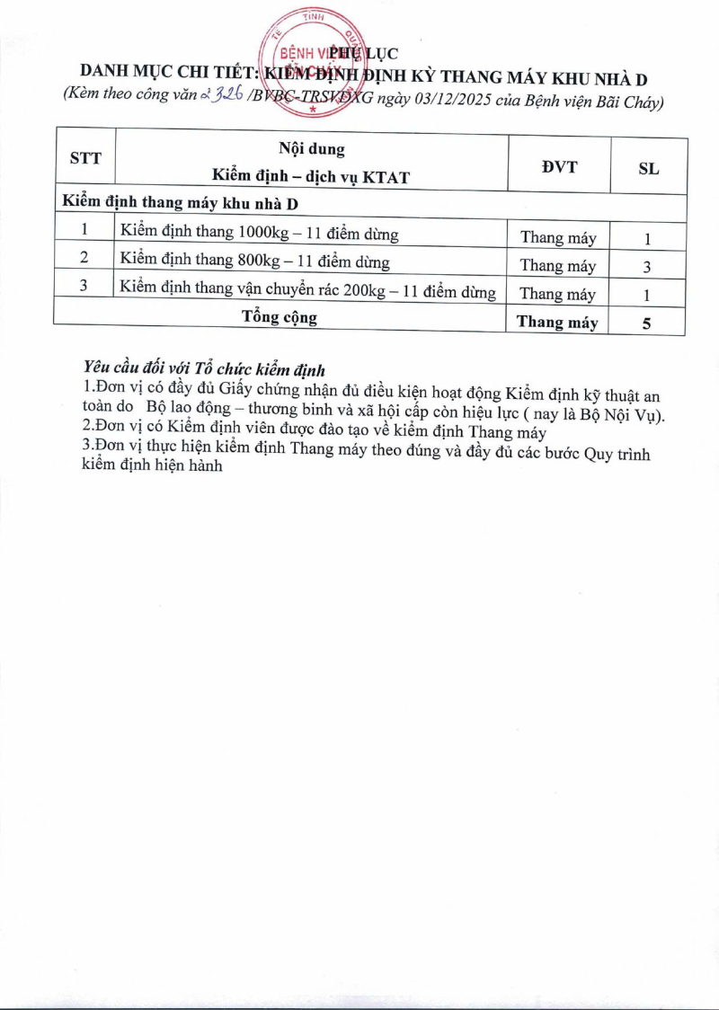 Thông báo 2326 nhu cầu kiểm định định kỳ thang máy khu nhà D 2025/12/03 09:29 Thông báo 2326 nhu cầu kiểm định định kỳ thang máy khu nhà D