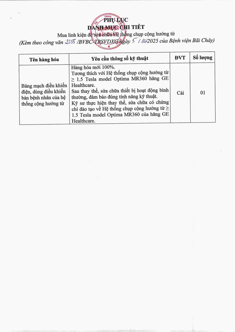 Thông báo 2355 nhu cầu mua linh kiện để sửa chữa hệ thống chụp cộng hưởng từ 2025/12/08 09:40 Thông báo 2355 nhu cầu mua linh kiện để sửa chữa hệ thống chụp cộng hưởng từ