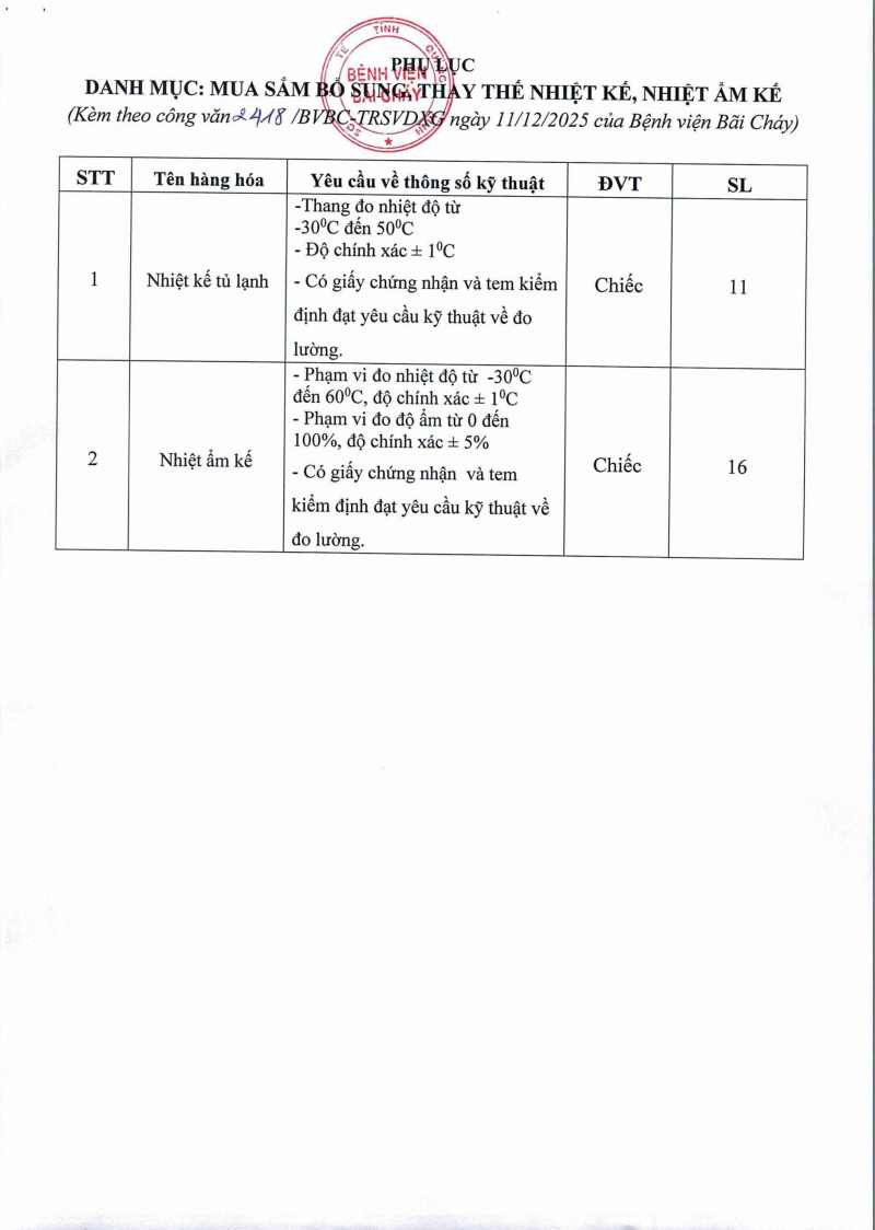 Thông báo 2418 nhu cầu mua sắm bổ sung, thay thế nhiết kế, nhiệt ẩm kế 2025/12/11 03:18 Thông báo 2418 nhu cầu mua sắm bổ sung, thay thế nhiết kế, nhiệt ẩm kế