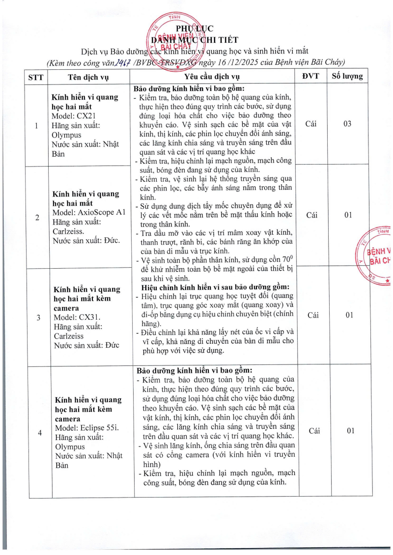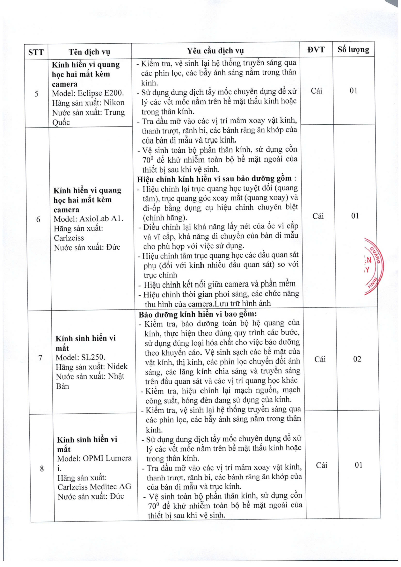 Thông báo 2467 nhu cầu dịch vụ bảo dưỡng các kính hiển vi quang học và sinh hiển vi mắt