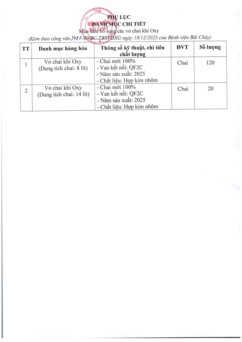 Thông báo 2487 nhu cầu mua sắm bổ sung các vỏ chai khí oxy 2025/12/19 09:13 Thông báo 2487 nhu cầu mua sắm bổ sung các vỏ chai khí oxy