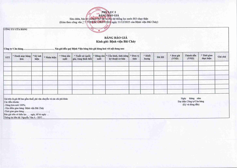 Thông báo 2590 nhu cầu sửa chữa, bảo trì và thay thế vật tư cho hệ thống lọc nước RO chạy thận\