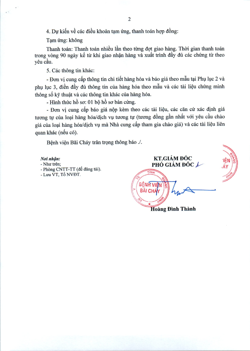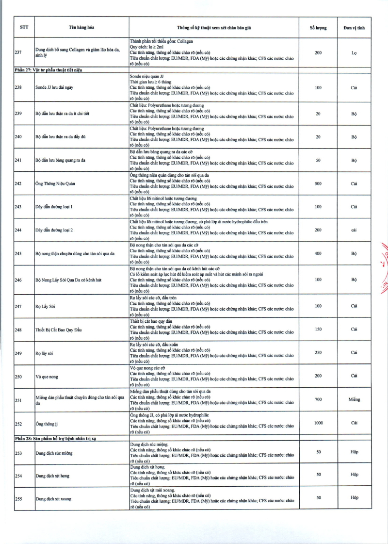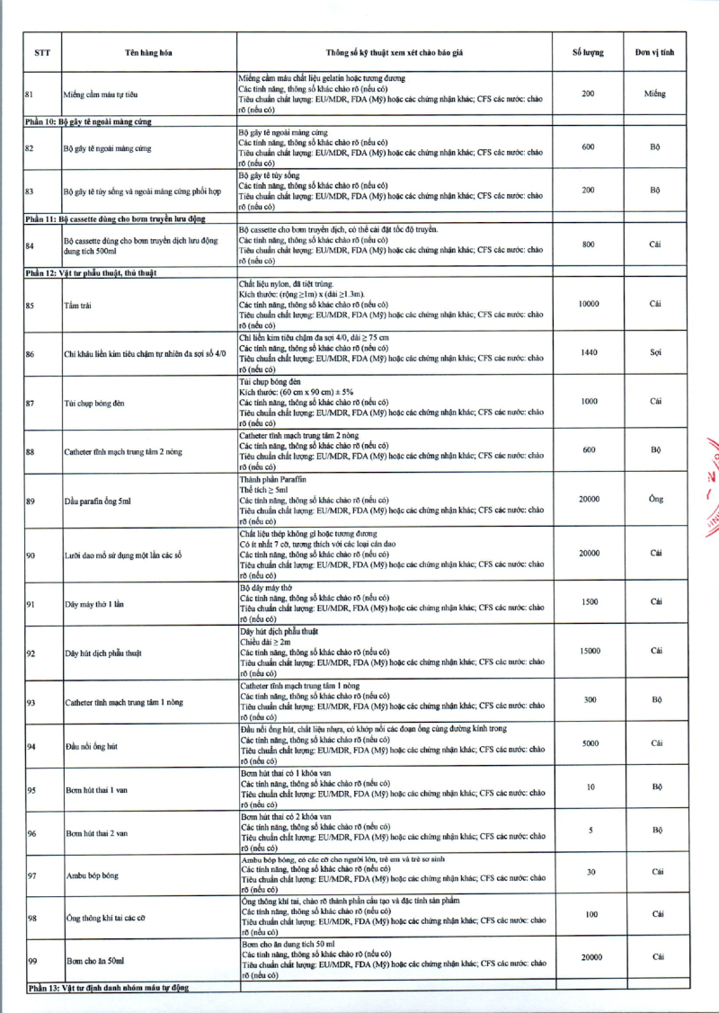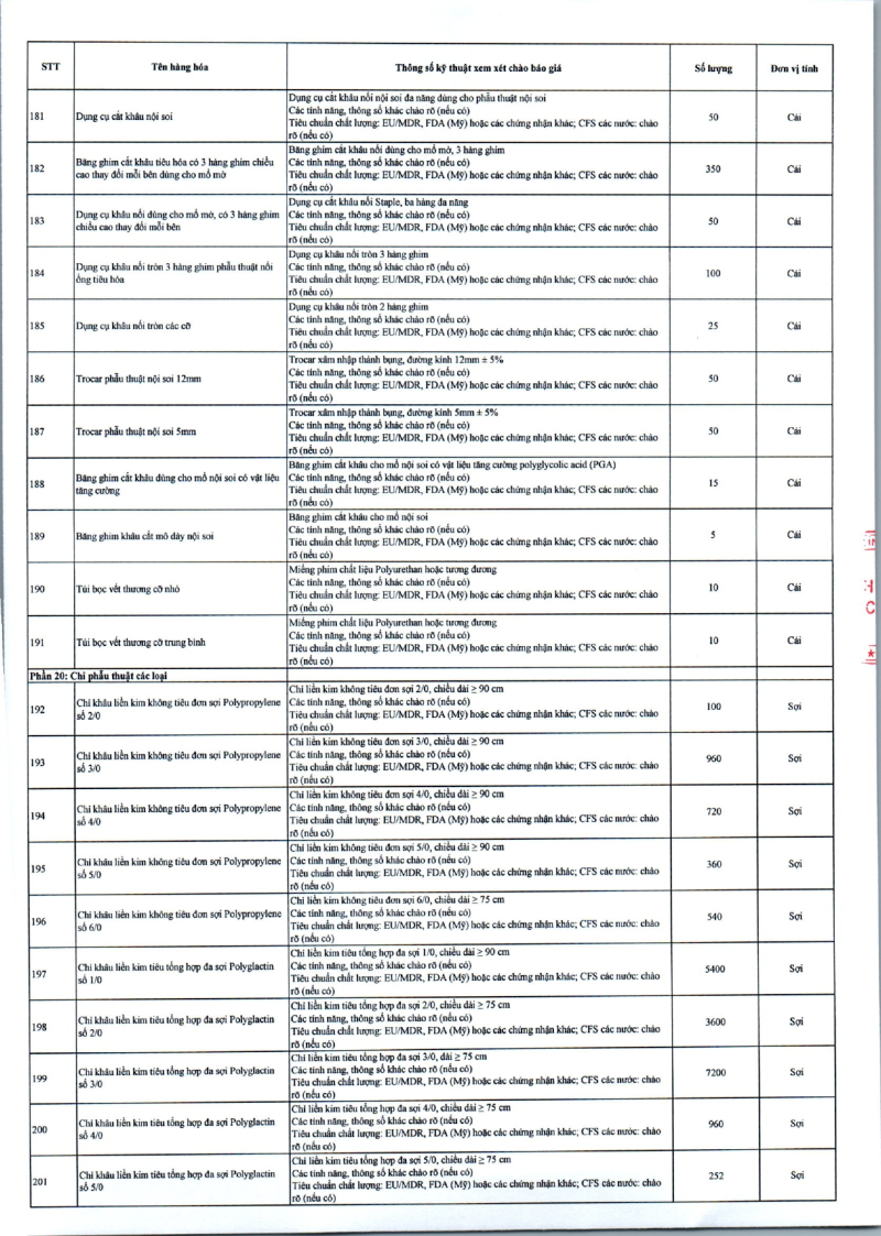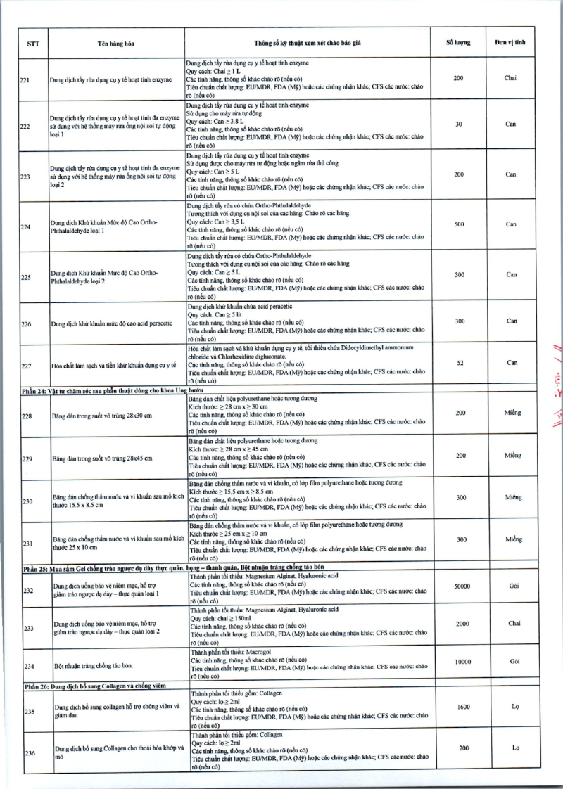 Thông báo số 709 về nhu cầu mua sắm vật tư can thiệp mạch, xquang can thiệp 2026,2027