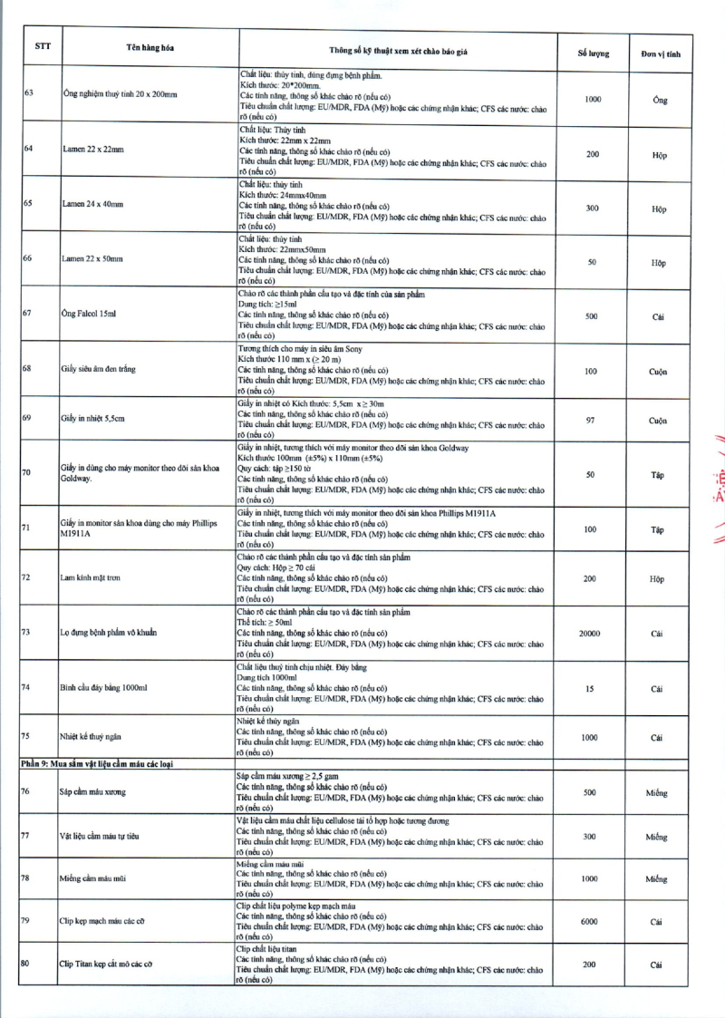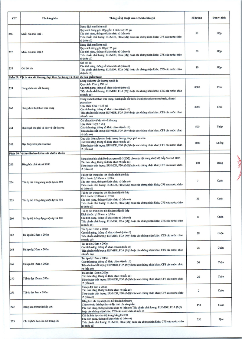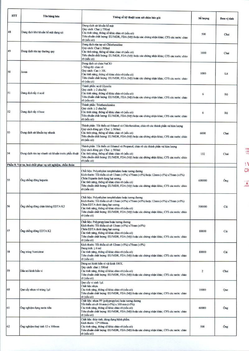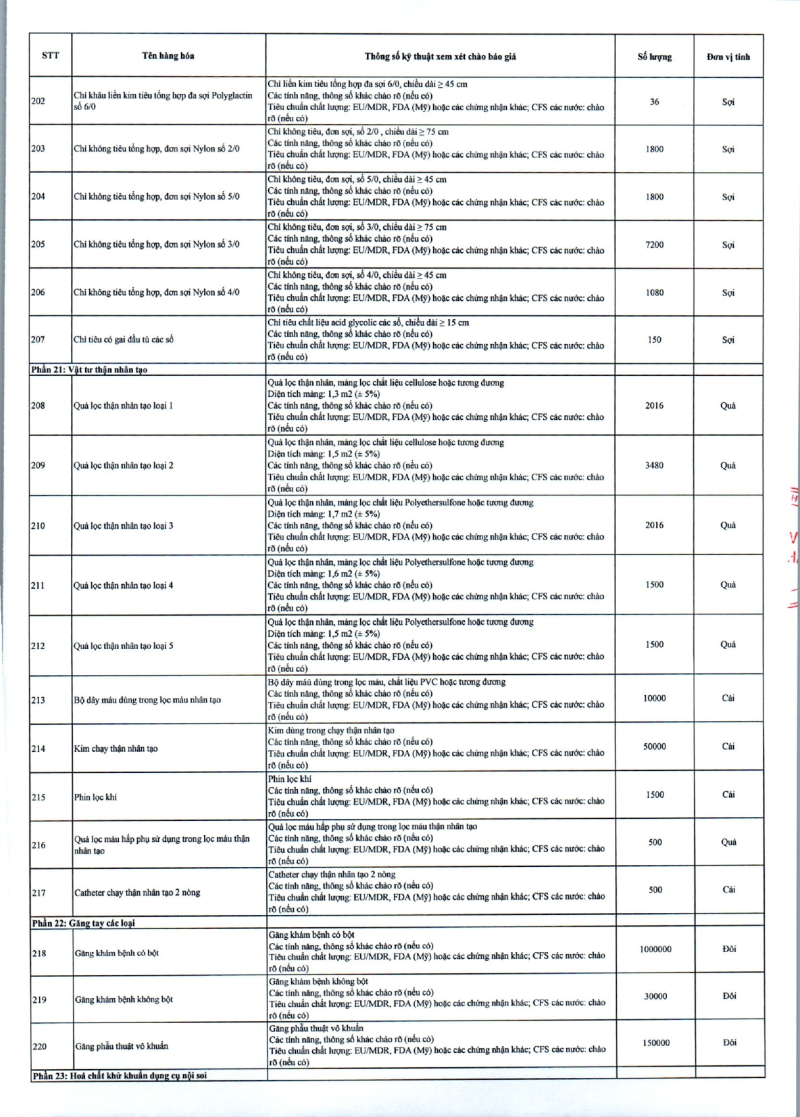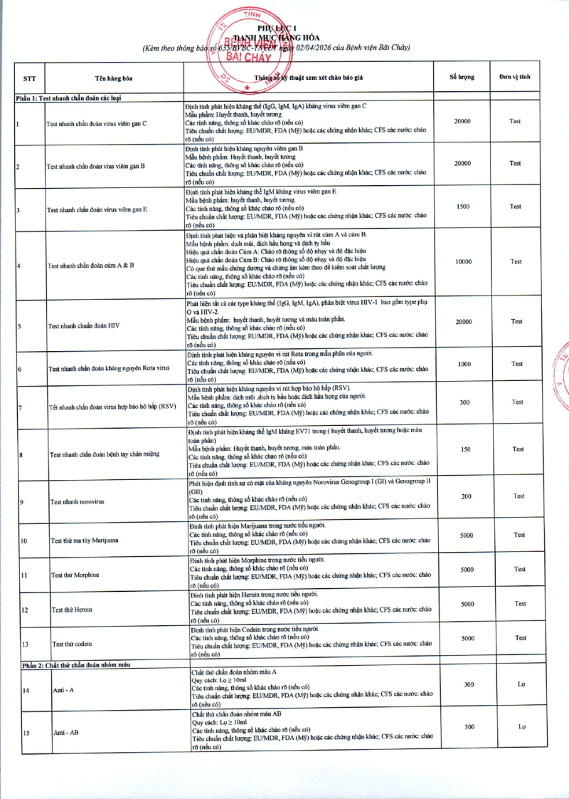 Thông báo 635 về nhu cầu mua sắm vật tư y tế phục vụ công tác chuyên môn