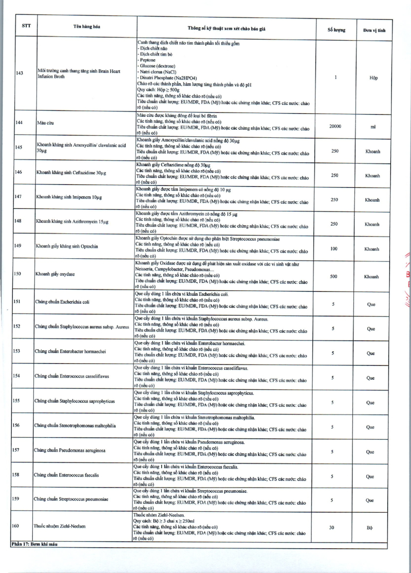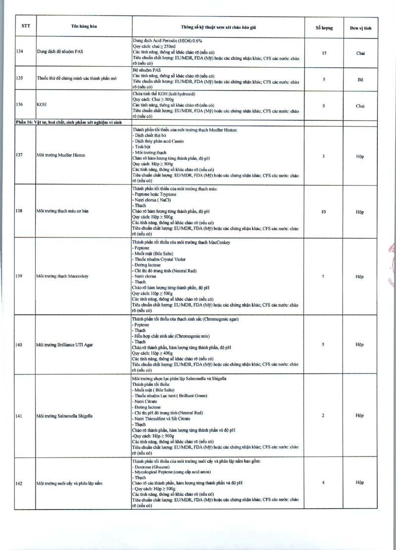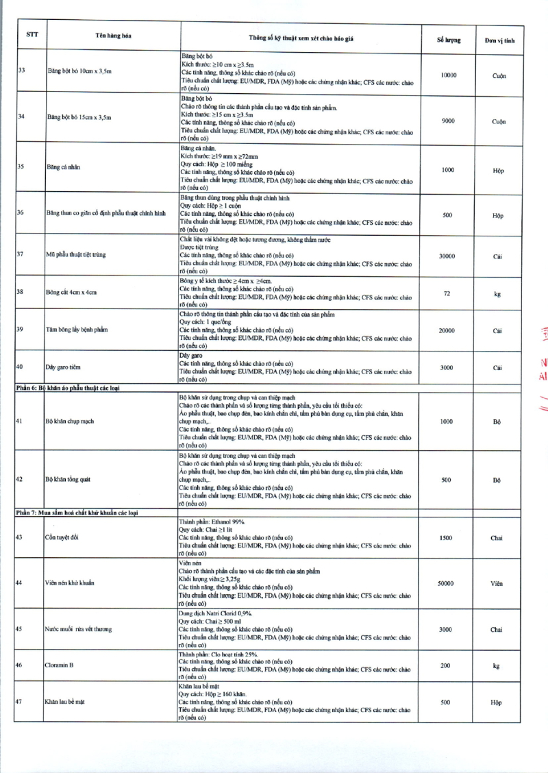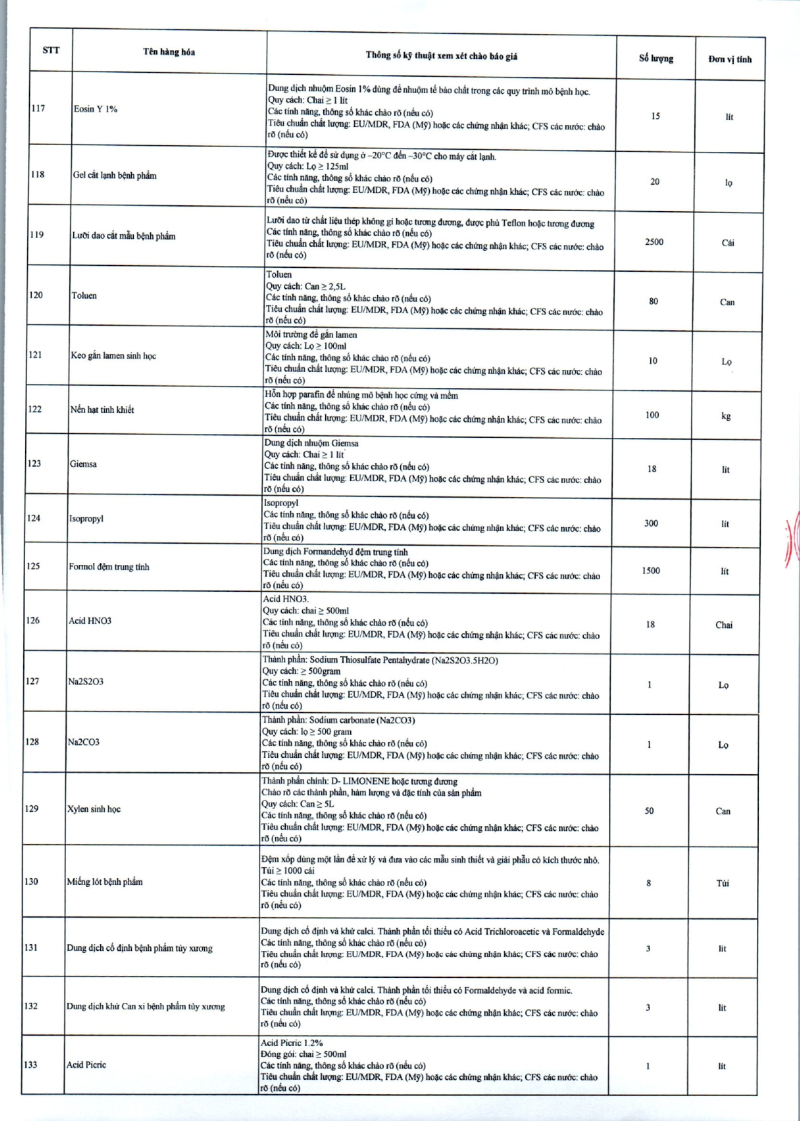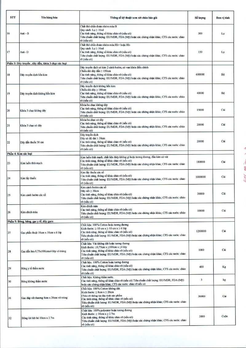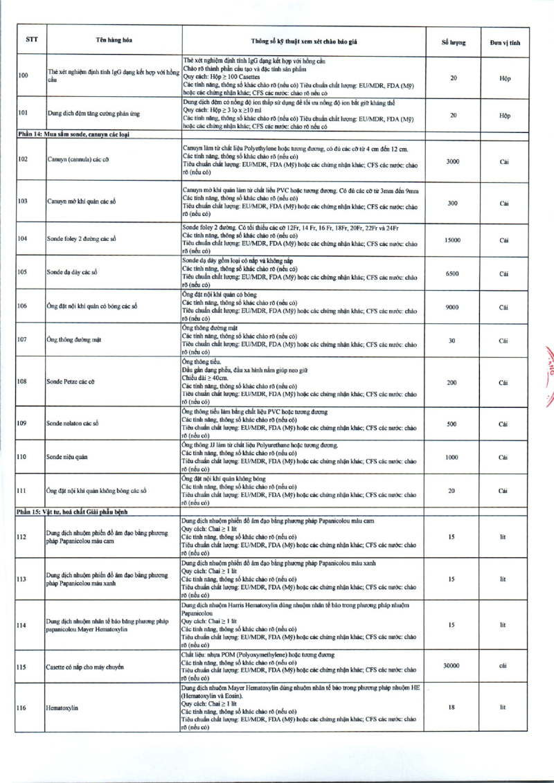 Thông báo 635 về nhu cầu mua sắm vật tư y tế phục vụ công tác chuyên môn