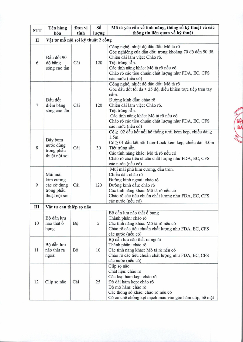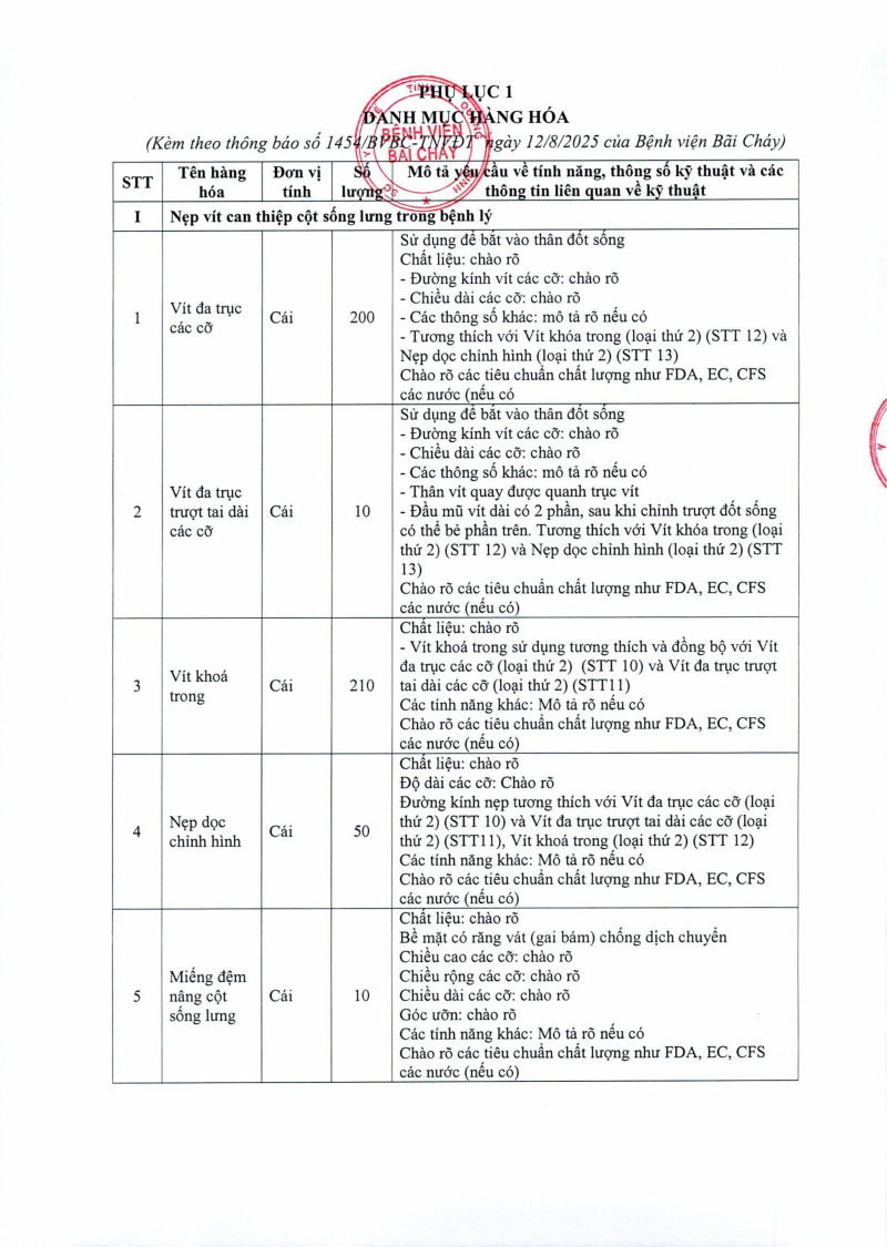 Thông báo số 1454 về nhu cầu mua sắm vật tư can thiệp thần kinh cột sống phục vụ công tác chuyên môn đợt 2 2025/08/15 02:53