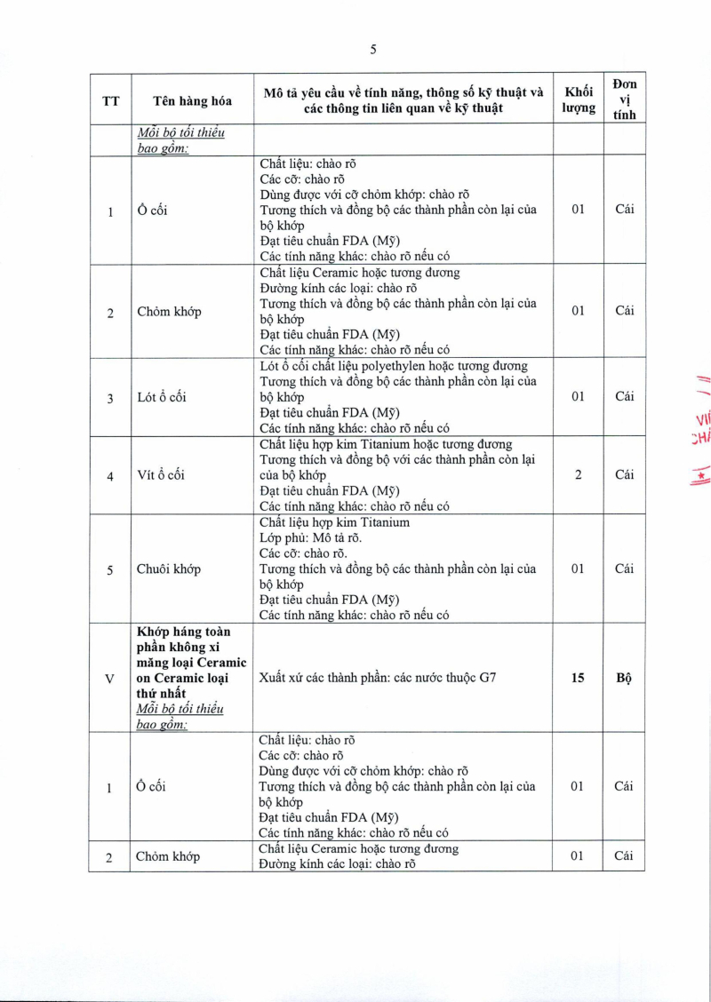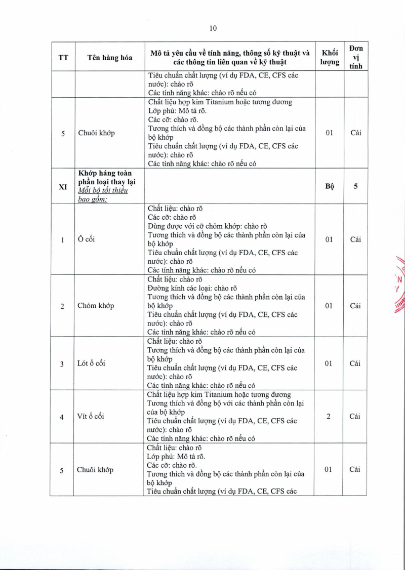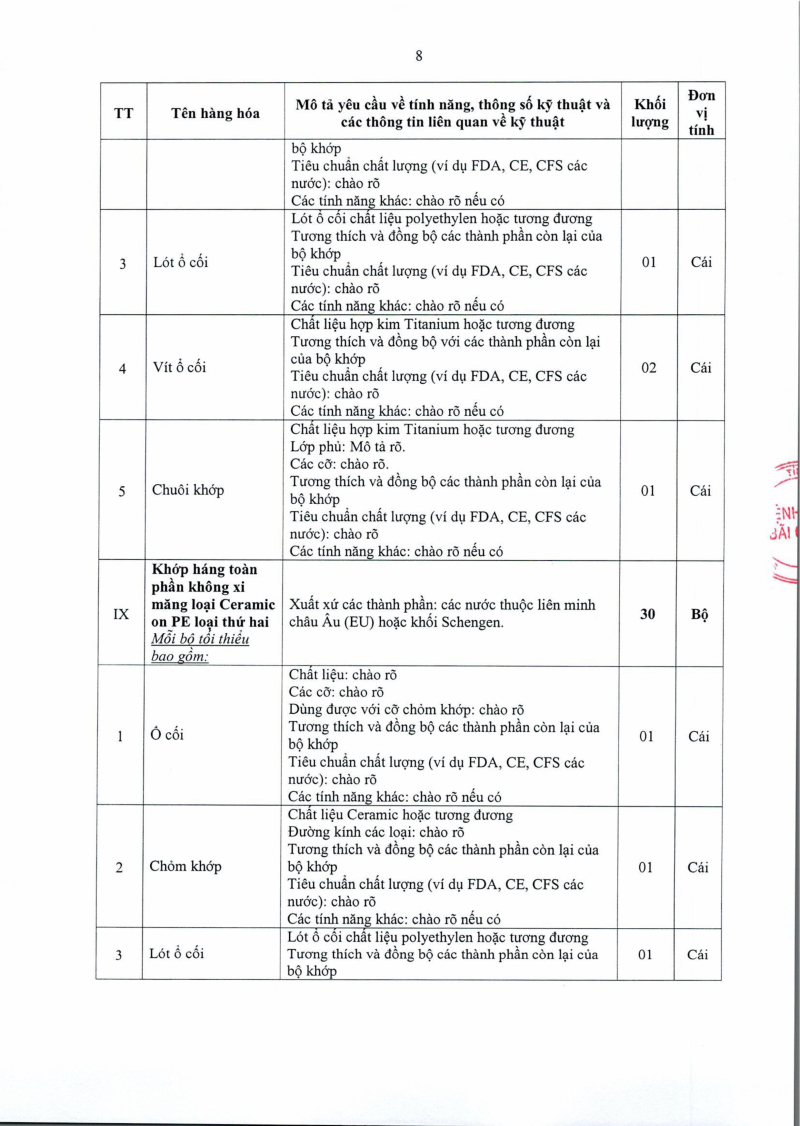 Thông báo số 1455 về nhu cầu mua sắm khớp háng nhân tạo phục vụ công tác chuyên môn năm 2025, 2026 2025/08/13 03:39